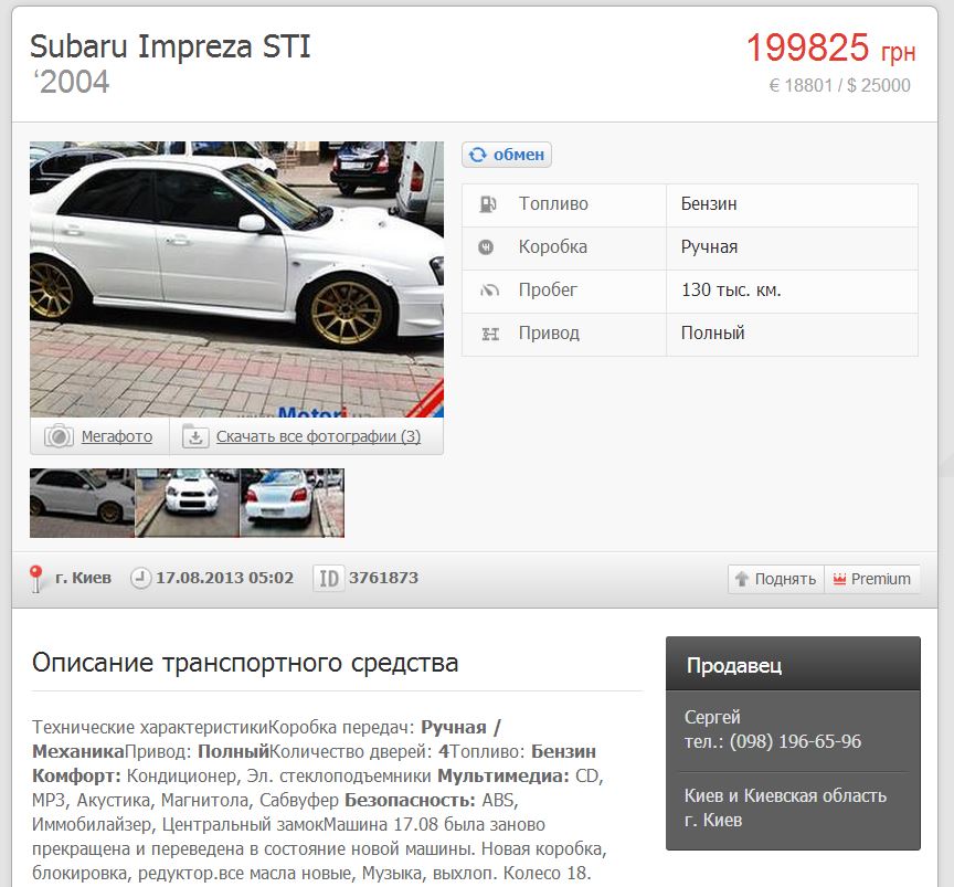 Kostya писал(а):Те, що авто виставили на продаж лише кілька днів тому теж аргумент на користь моєї версії. Ми виставили, злодії побачили та викрали...