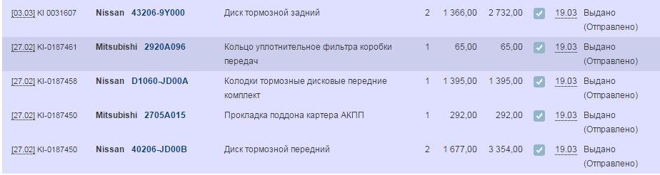 В общем, заказывала я потихоньку то там, то там запчасти перед ТО, постоянно мониторила экзист и попались мне на глаза диски оригинал по смешной цене при постоянном росте курса, я решила, что лучше взять. В итоге, цена оказалась выше, но я решила не отказываться, хоть ты меня и отговаривал от такой покупки.