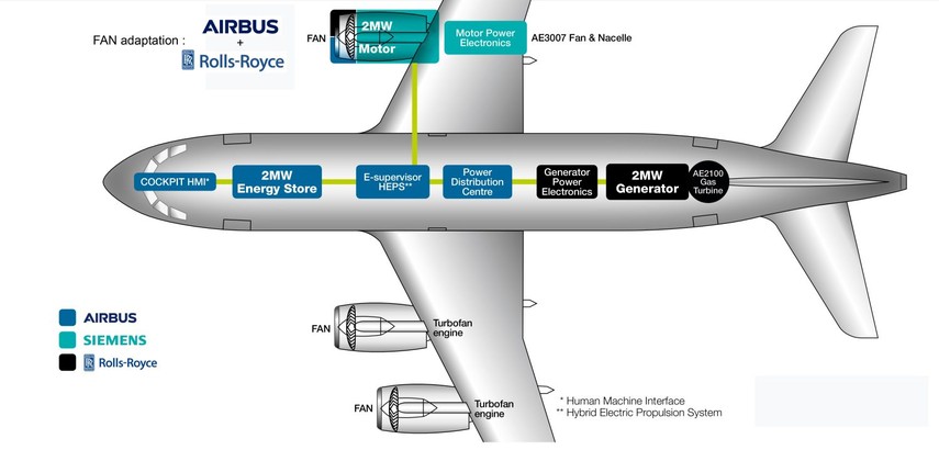 Rolls-Royce спроектирует газотурбинный двигатель, генератор мощностью 2 МВт и электронные компоненты. Разработкой электродвигателей, электронного блока управления, преобразователей и системы распределения энергии займется Siemens.