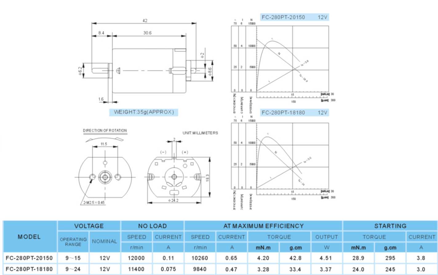P. S. А даташит на моторчик во вложении, судя по нему гораздо более распространенный FC-280PT-20150 тоже пойдет, по крайней мере щетки должны быть одинаковы