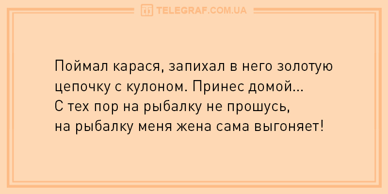 Выезжать на рыбалку надо ранним утром, потому что жена ещё спит и не клюёт вас и не дёргает ваши снасти…