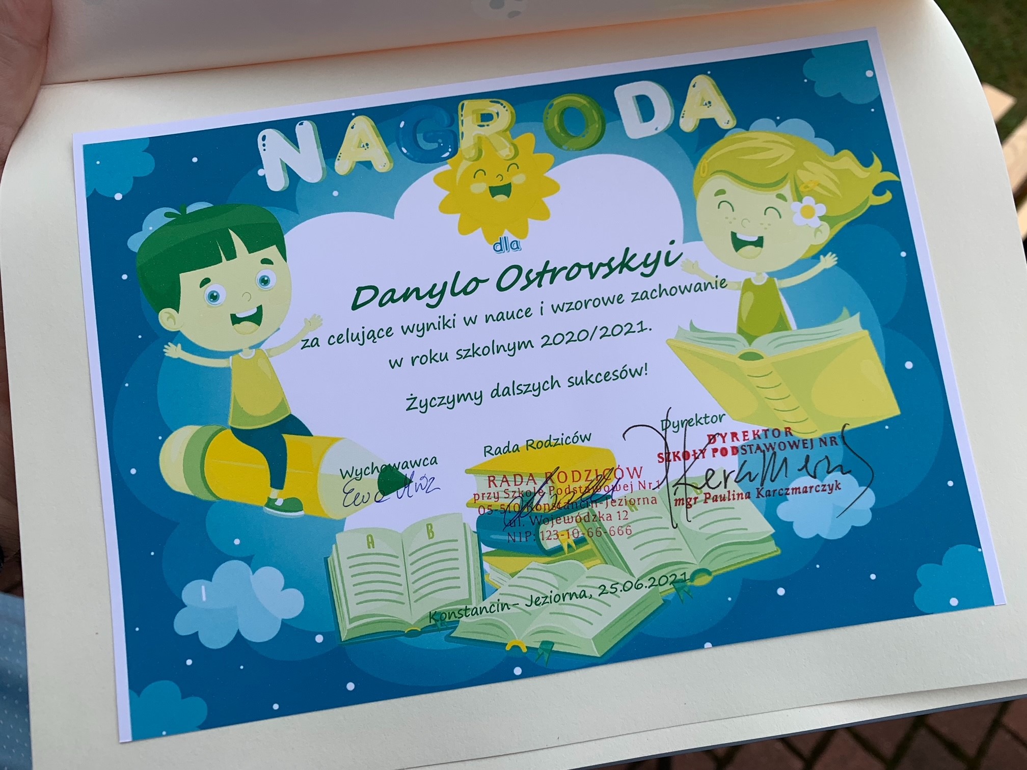 А родители некоторых детей подходили и благодарили нас за воспитание Дани, за то, что он дружит с их детьми (поляками) и очень благотворно на них влияет.