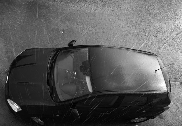 Кашкай под ливнем. Перевел в ч/б — показалось, что так больше драматизма
