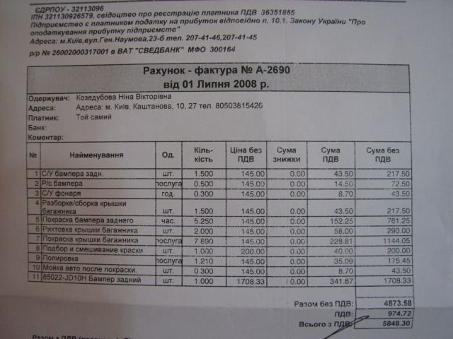 Нина писал(а):Но топик я завела для того, чтобы показать всем ВО СКОЛЬКО МНЕ оценили ущерб на СВОБОДЕ.