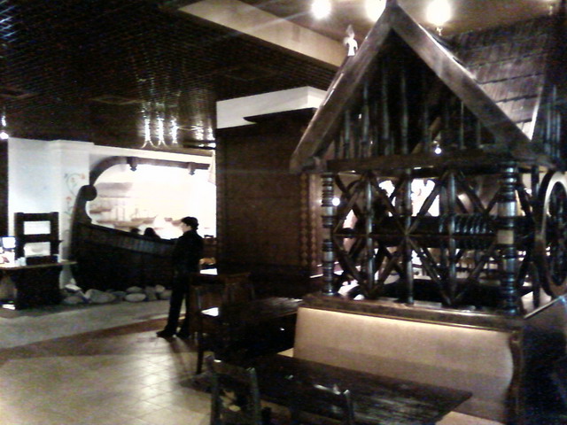 Не заказывали места возле диванов и в ладьях из-за боязни неутного расположения всех прибывших. Хотя, при желании, место можно поменять - посетителей мало. Напитки заказываем у барных стоек, еду какая нравится берем в припрятанном зальчике быстрого питания. Накопленая перед открытием и устаревшая провизия за полторы недели съедена обезумевшими от ожидания посетителями. Так что не боимся. Не опаздываем, так как девушкам еще захочется экскурсий. Все. Приятного отдыха. Мы (если получится) постараемся подтянуться к 20-30.