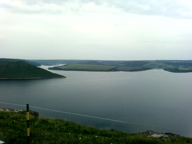 При въезде в село минуем живописное озеро с вербами и в 18-30 подкатываем к выложенному мозаикой дому. Надо отметить, что все дома и дворы там ухоженные, свежевыкрашенные, несмотря на каждодневный тяжкий сельскохозяйственный труд – село отдаленное и люди выживают самостоятельно, вне зависимости от реалий цивилизации. Поздоровавшись с хозяевами, безапелляционно отпрашиваемся на часик до ужина на Днестр – благо до него пяток километров, да и должен же я был смочить спиннинг? По подсказанному маршруту, пыльным проселком, пару раз прозевав с поворотами, выкатываем на склон Днестра и заворожено останавливаемся. Нам открылся прекрасный вид на величественный противоположный берег. Вертикальные утесы, переходящие в крутые, сплошь поросшие изумрудной травой, склоны. Стадо коров, пасущееся на одном из склонов. Через маленький дачный поселок спускаемся к воде. Вода чистая. Пару раз забросил спиннинг и сложил его обратно в багажник – хотелось смотреть, смотреть, смотреть. Река в этом месте на удивление широкая – не намного уже Днепра в Киеве. Впрочем, это так и называется – Днестровское водохранилище.