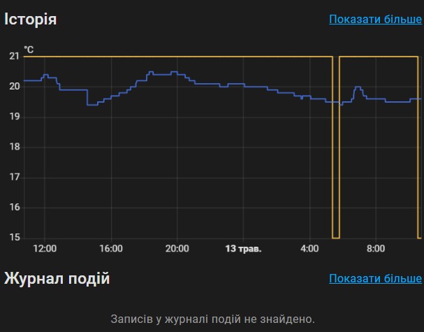 Катався на вихідних до дочки. Встановив у неї теж розумний будинок. У неї там більше поле для творчості. Є великий термоаккумулятор на тону води з трьома нагрівачами по 3кВт. Можна погратись і нагрівом і керуванням опаленням.
