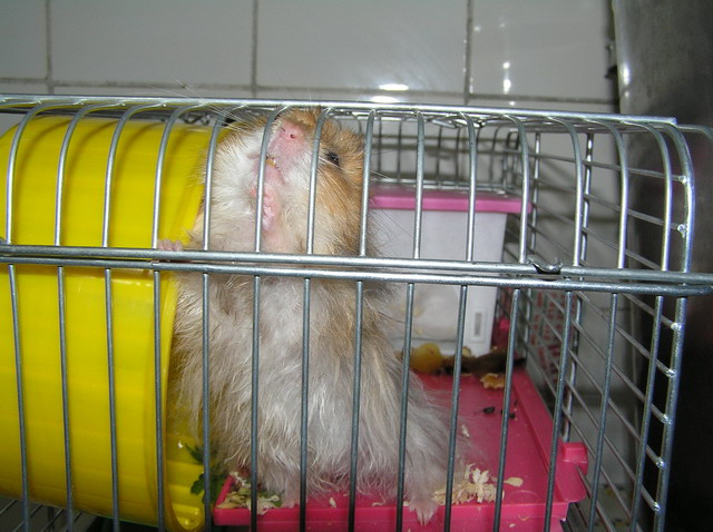 Наш хомячило продолжает вести исключительно нехомячий образ жизни - ест мясо и курятину, выбрасывает непонравившуюся ему еду из клетки на пол, даёт лапу, на фразу "иди в будку" реагирует правильно - идет и прячется в своём домике. Недавно пил пиво. После этого медитировал (сидел посреди клетки и раскачивался из стороны в сторону). Потом валялся по клетке как тряпочка, отсыпался. Потом его с бодуна на хавчик пробило - тряс клетку, требуя еды, согласился на жаренную свинину. При появлении кого-то из нас рядом с клеткой выскакивает из домика и просится поиграться. Думаем: это у нас какая-то особая порода хомяков или с экологией что-то невпорядке? :smile:
