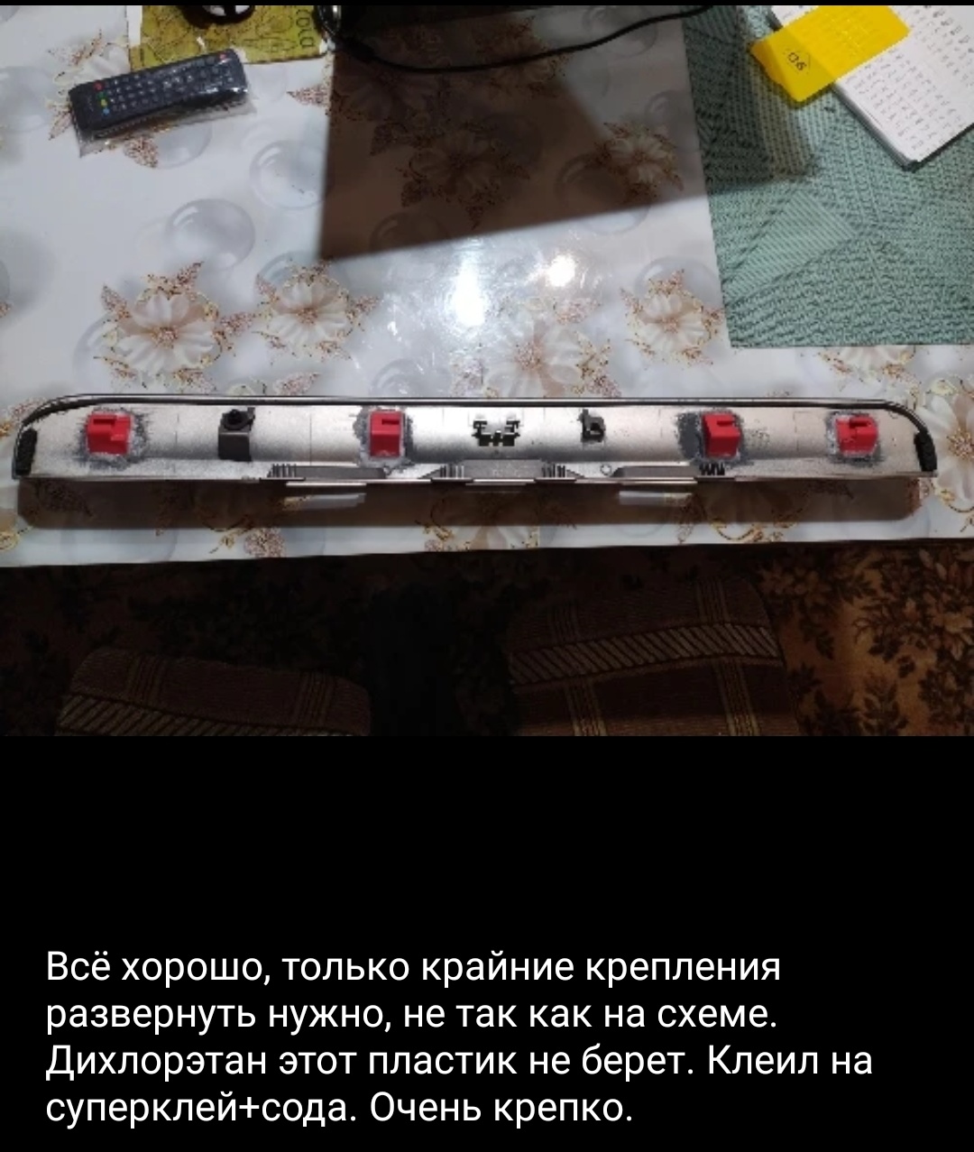 Сэнсэй писал(а):bandit писал(а):Сеперклеем с содой в несколько слоев усилил все крепления с каждой стороны, поверхности где предполагалось усиление предварительно были зачищены, а после заусеницы были обработаны и даже прокрашена внутренняя часть. Площадь удержания увеличилась в разы. Получилось все очень аккуратно, хоть и внутри и не видно, но люблю когда сделано хорошо.