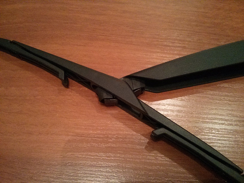 Скоба скачала одевается на щетку дворника, потом собирается. Учитывая что за 5 лет не разу его не снимал, заодно поменял резинку.