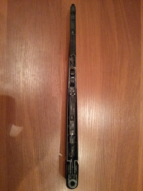 Поднимал как-то задний дворник, чтоб от тяжести снега не отвиснул, только отслонил от стекла а он просто упал на землю. Треснуло крепление. Наверно до этого приложил усилие к замерзшему когда складывал в предыдущий раз, вот и треснул, тем более на морозе. Крепление там совсем хиленькое.