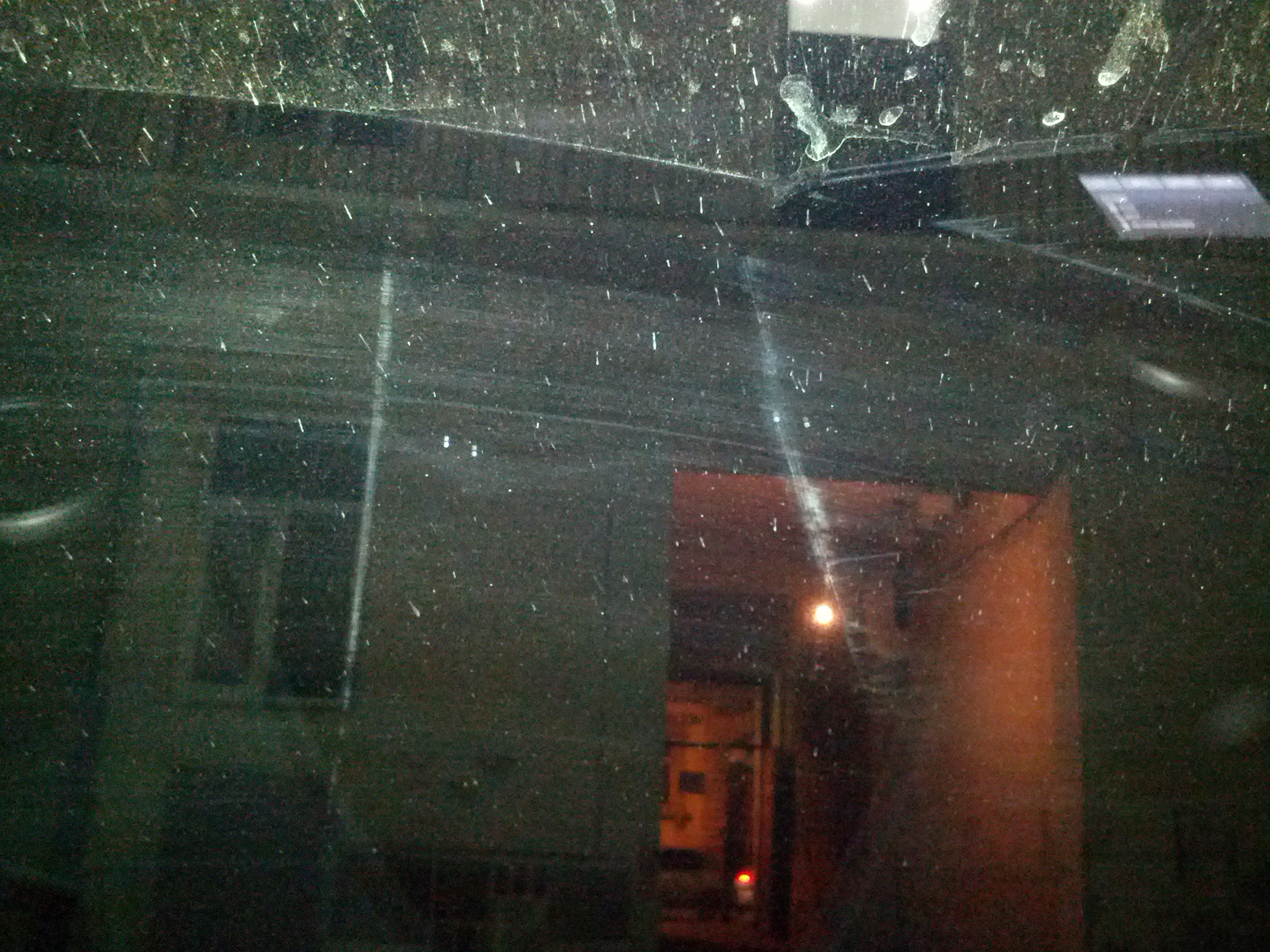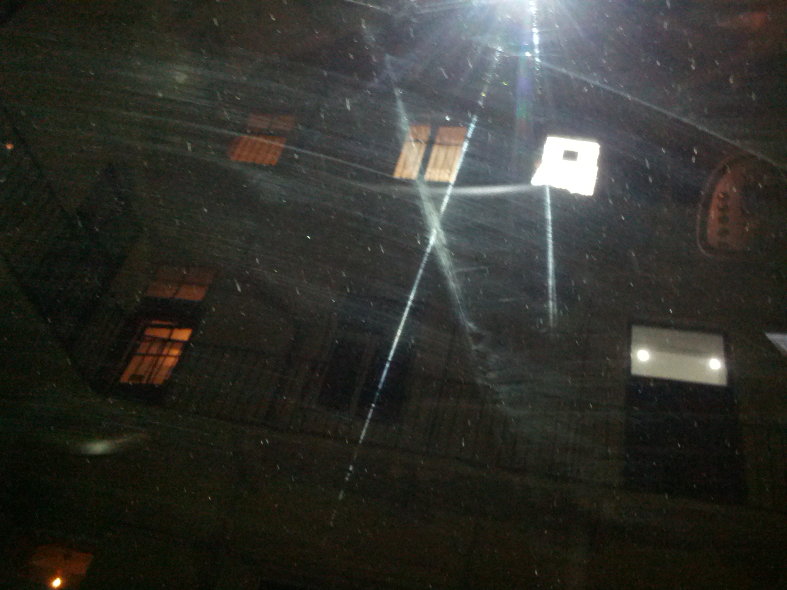 Я себе так лобовуху поцарапал. Из-за того что шел дождь, то пришлось сразу колхозить что-нибудь. Затянул на время пластиковой стяжкой. А т.к. нет ничего долговечней чем временное, то так и езжу уже полтора года