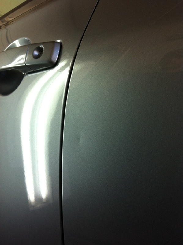 Таки провернул я операцию сегодня. Пока малой был в бассейне, помыл машинку и поехали мы на смарт солюшнс, благо дело с ЦСКА через Подол удобно. Вмятинку убрали так, что и следа не осталось, правда повозится пришлось из-за места неудобного и вибры, наклеенной поверх метала изнутри двери. После полировки скола в лаке на этом месте почти ничего заметить нельзя, еле видный скол остался. Взяли 200 грн, работа заняла около 30 минут. По моей просьбе полирнули еще одно место на двери ( ссадина от грая соседского зеркала, точнее от грязи, которая была на зеркале) и на ляде под стеклом паутину царапин оставленную сползавшим грязным льдом зимой. За полировку отдал 150 грн. Результатом доволен!