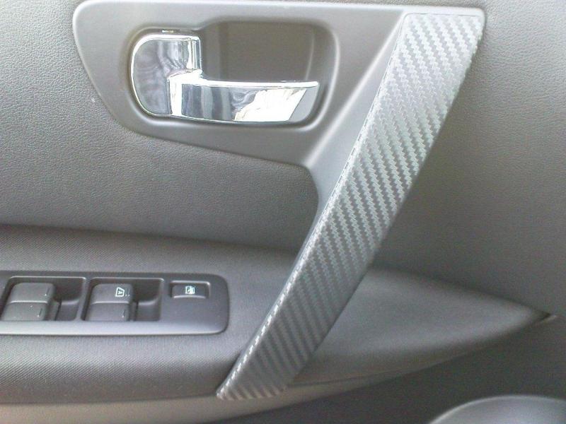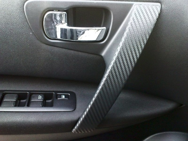 была проблема - поцарапаные накладки внутренних ручек. в базовой комплектации они не серебристые, а из того же пластика, что и козырёк приборной панели. каждый пассажир обязательно оставлял о себе память кольцами, ногтями, пугавицами и прочей "фурнитурой". по случаю набрёл на ребят, занимающихся поклейкой плёнки для "типа тюнинга"
