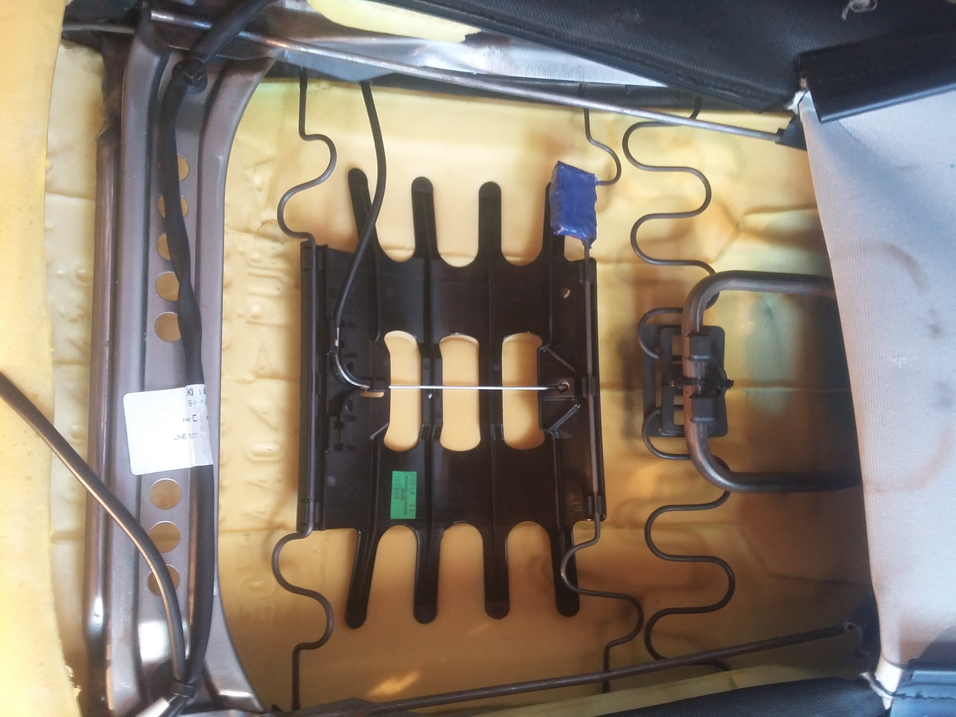 !!! И вам не рекомендую. Все можно сделать не демонтируя сиденье. Далее.... Отщелкнул сзади спинки три пластиковые полоски-защелки и снял тканевую обивку. Мне открылся вид на поясничную поддержку и тэн подогрева сиденья (см.фото). Оказалась что и за моего большого веса 100кг и постоянного смыкания ролика регулировки лопнула проволока-пружина поддерживающая каркас пластиковой планки поддержки поясницы (в вашем случае это может быть также регулирующий тросик. Там больше нечему ломаться) (см.фото). Взяв две пластины метала, с помощью сварки мы восстановили проволоку. Сначала электродом 2-3мм прихватили проволоку к одной пластине, а потом приставив вторую обварили и со второй стороны (см.фото). (Тоже самое можно сделать без сварки, применив медную трубочку соответствующего диаметра и обжав ее.). После чего обработали пластины болгаркой на предмет острых углов и обмотали изолетой, на всякий случай Зарегистрированные пользователи: Google [Bot]