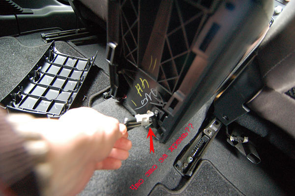 Решил я вот давеча избавиться от надоедливых щелчков в подлокотнике. Дай думаю посмотрю, шо там. И вот откупорив крышку со стороны задних пассажиров увидел свёрнутый и замотанный заводской изолентой вот этот провод с разъёмом.