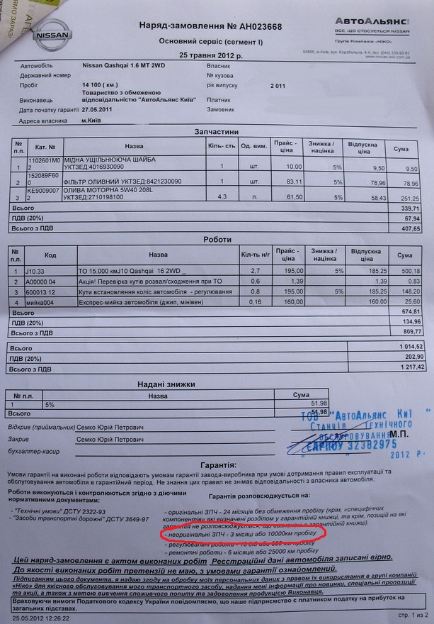 Woolf писал(а):P.S. (Только что общался с барышней по горячей линии Ниссан - ответила, что можно приносить свои расходники. Странно чего оф дилер об этом не знает)