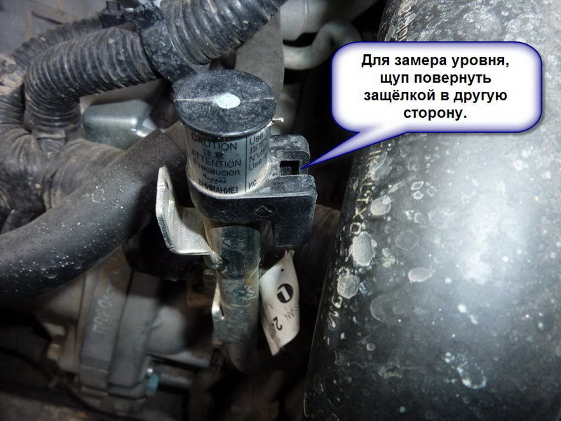 Измеряем уровень на заведенном двигателе на ХХ в положении селектора "P". Можно в "N", но тогда не забываем про ручник.