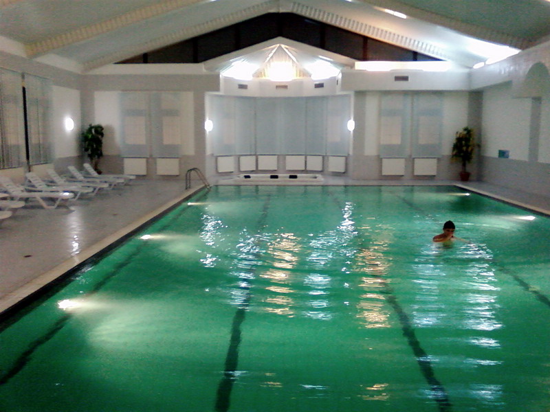 Можно разнообразить наши встречи внесением дополнений в формат. Например, посещаем небольшой оздоровительный комплекс, в котором есть уютный, чистый бассейн. Размер 12,5х6 метров. В торце есть джакузи 2х3 метра, где под напором воды девчонки могут помассировать спину или пятки, после чего на удобных лежаках обсудить последние поступления в бутик Картье. При этом они могут с удовольствием наблюдать за спортивным плаванием мальчиков-одноклубников. Стоимость бассейна 25 гривен с человека в час. Можно снять весь бассейн за 250 гривен в час и там кроме нас не будет больше никого. На 10-15 человек выходит недорого. Я даю уроки плавания одноклубникам (бесплатно). Раздевалки и душ чистые, новые. Желающие за дополнительную плату посещают сауну и небольшую тренажерную комнату. После бассейна и джакузи по чистому коридору проходим в уютный ресторанчик с неприхотливой, но недорогой и вкусной едой (салаты 20 грн., горячее блюда 20-25 грн.), где общаемся и подкрепляем силы. Папа иногда выходит покурить свою трубку в домашний дворик, где есть удобные лавочки. Все это время машинки нас дожидаются на охраняемом дворике, рассчитанном на 30 машин. Людей практически нет. Проводим время с пользой для здоровья и нервов. Для наглядности даю фото бассейна: