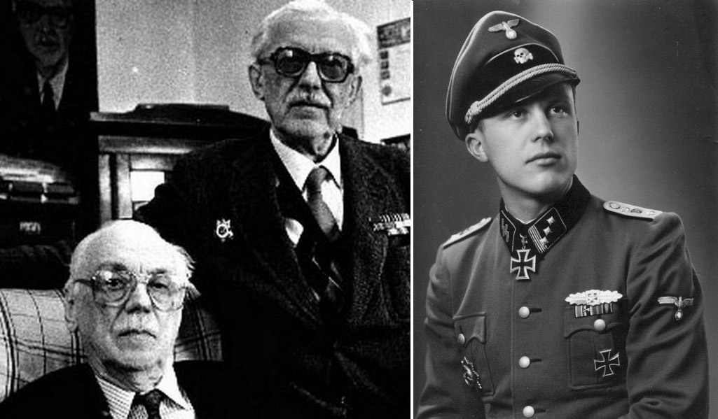 На фото слева изображён со своим братом Сергей Михалков — тот самый, гимнюк и самый отчаянный сталинист, разжигавший в литературе тридцатых годов антишпионскую истерию и лизавший задницу Сталину. А справа можно увидеть его брата, Михаила Михалкова в форме СС, и это не постановочное театральное фото — в 1941 году Михаил Михалков, служивший до этого в особом отряде СМЕРШ, попал в плен, где представился этническим немцем родом с Украины и получил должность в танковой дивизии СС. Как там писал Сирожа — "там родные лес и горы, над посёлком воздух чист, здесь опущенные шторы и стоит живой фашист" — небось, брата имел в виду)