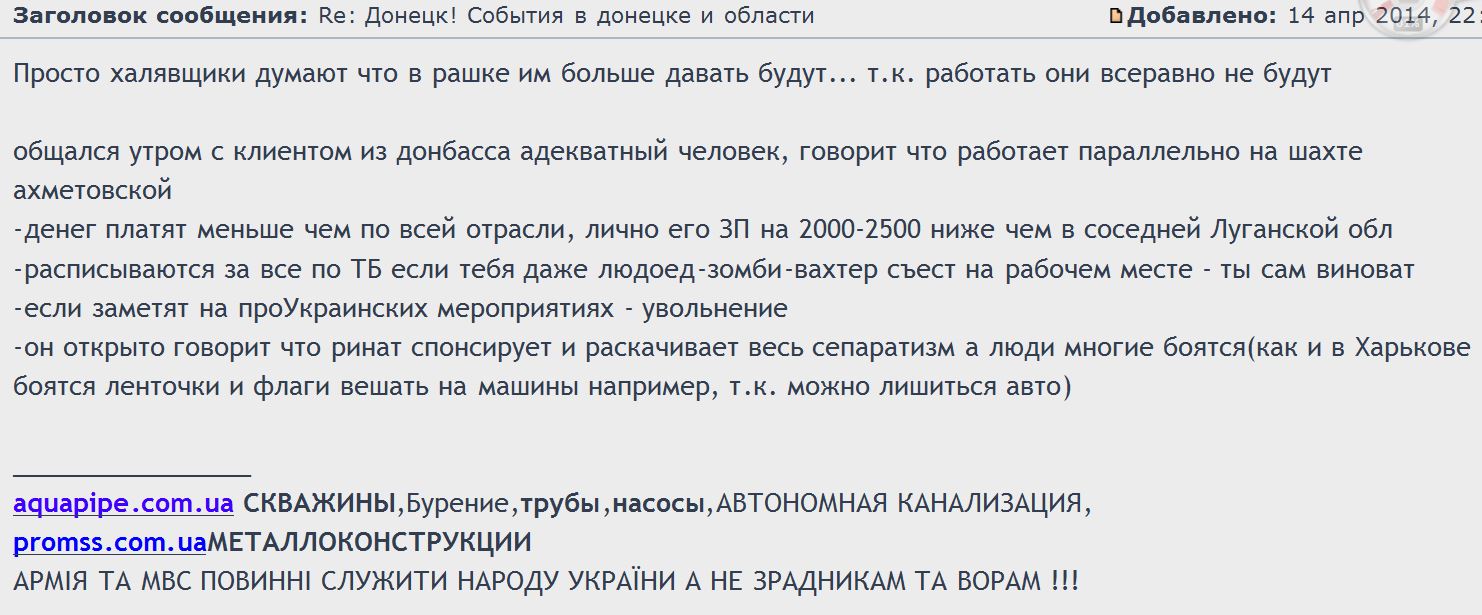 2. У прикордонних областях панує самозаспокоєння на предмет своєї "іншості" від Донецька. Віра в те, що грушники не можуть штурмувати їхні РУВС і не знайдеться 300 відморозків, кому вони роздадуть зброю, перш ніж зникнути. Особливо непевно в Харкові.Источник: http://censor.net.ua/n281091