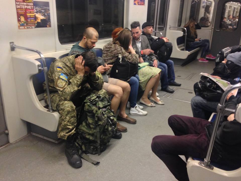 Вот я пишу это, в метро, ночью по дороге домой. А напротив меня сидит солдат. У него большой рюкзак, явно домой с вокзала. И лицо у него такое доброе. Он закрывает глаза и очень хочет спать, а рядом две девочки и мальчик хохочут о своих проблемах и открытиях. А он непонимающе смотрит по сторонам. На этот чужой мирный мир. А лицо доброе как у мальчика, который на уроке биологии не может зарезать лягушку. И никак не верится, что еще пару дней назад он поливал из своего АКС по посадке, где стоял другой его ровесник.