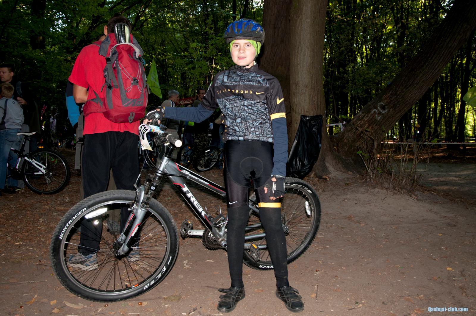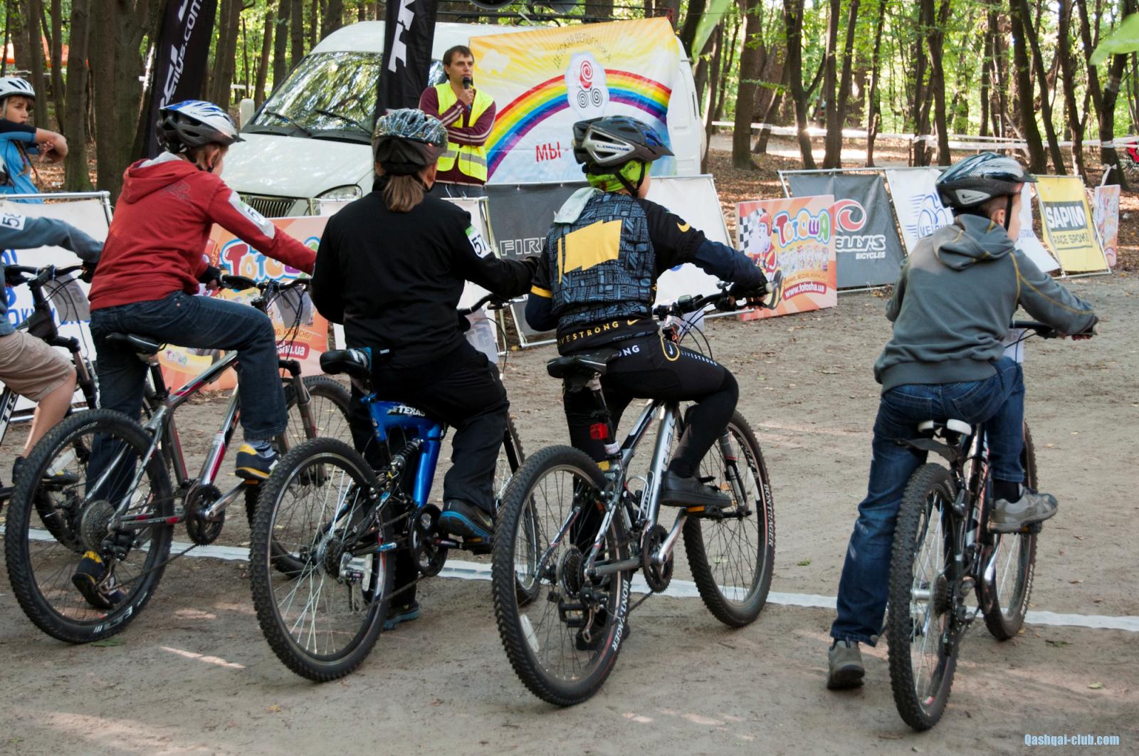 До старту, дівчтка віком 10 років на дорослих колесах 26". Серед них - Леся - дочка наших друзів-харків'ян. Вона вперше на старті подібних змагань та дуже нервується...