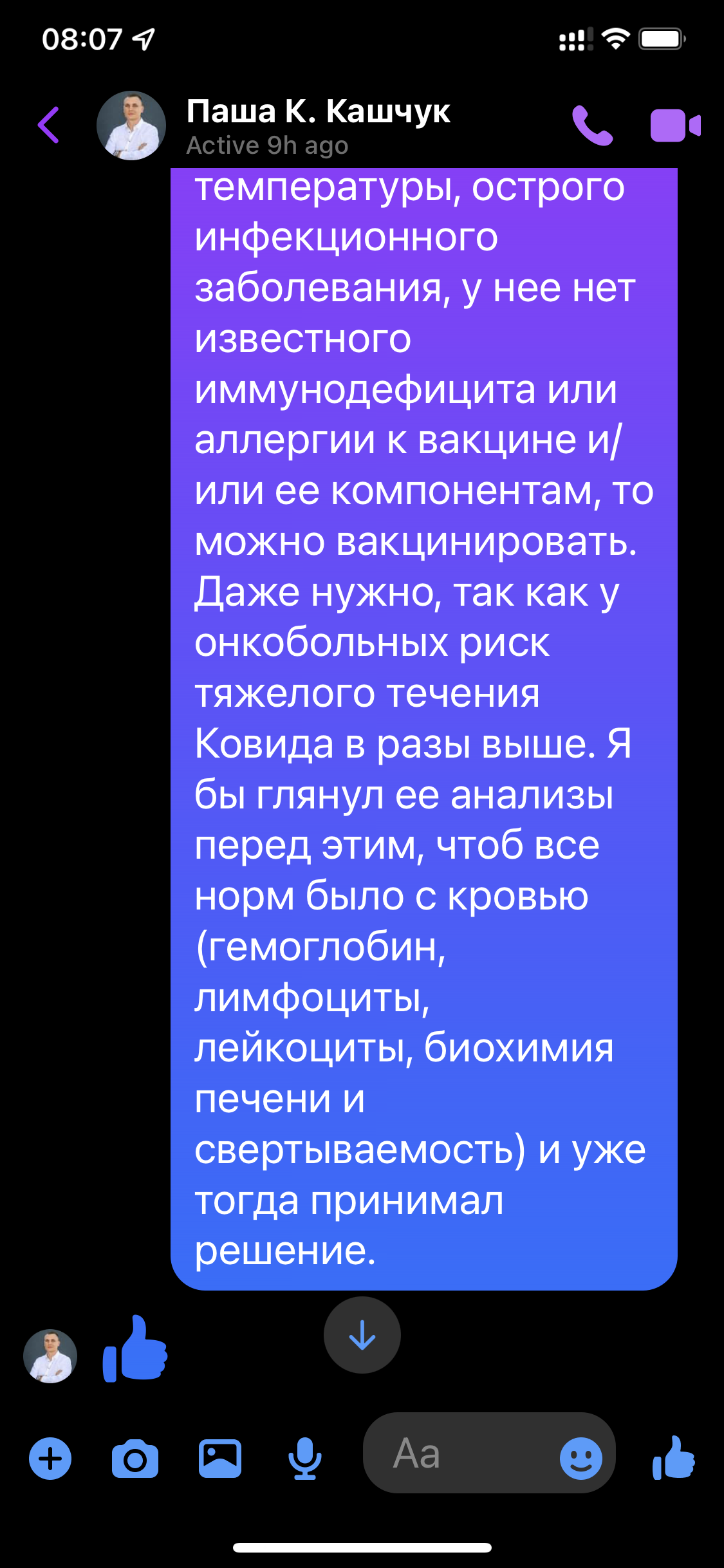 Поехала в онкоцентр на очередное обследование, по профилю все ок, но вакцину - низзя. Эпопея длилась чуть ли не с весны, в итоге повезли ее в платную клинику, там сказали - вы что чудите, делайте срочно! В итоге первую дозу сделали, вроде китайской как самой безобидной, но лично я от наших врачей в шоке