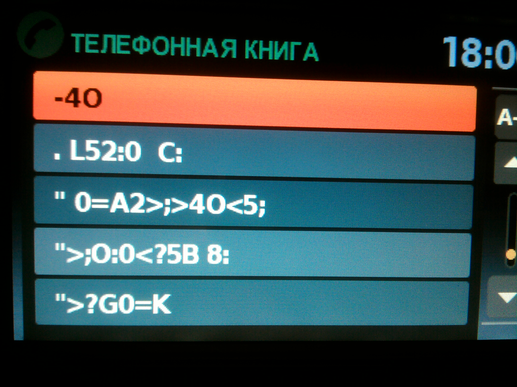 levsha писал(а):И я уже в который раз "намекну" что раз с одним телефоном всё нормально, то вряд ли виноват Nissan Connect (вспоминаем из-за чего вся перепалка началась). Но нюанс в том, что английские символы выглядят одинаково в utf8, koi8r, koi8ru, koi8u, cp1251, cp866 и еще в куче других кодировок. Именно поэтому я и говорю что добиться кривого отображения полностью латинских контактов очень непросто