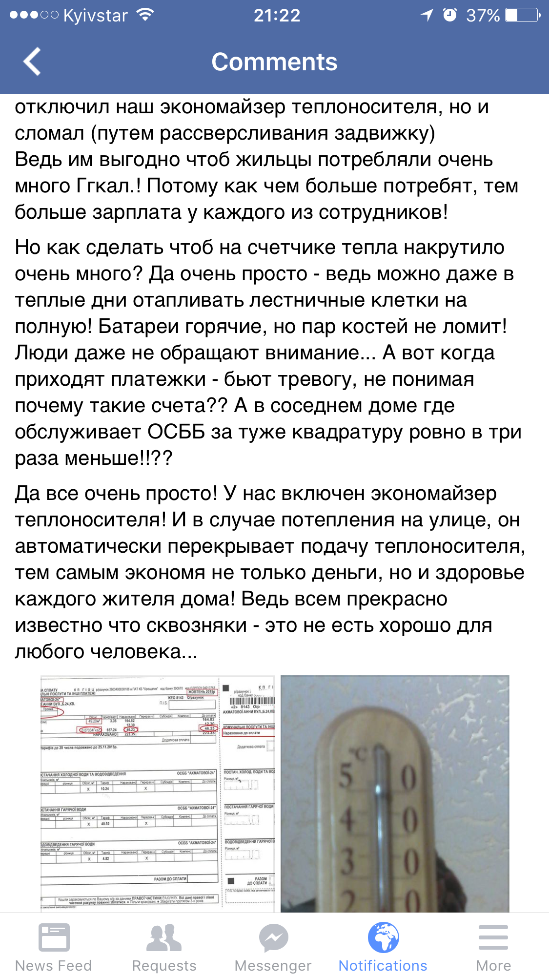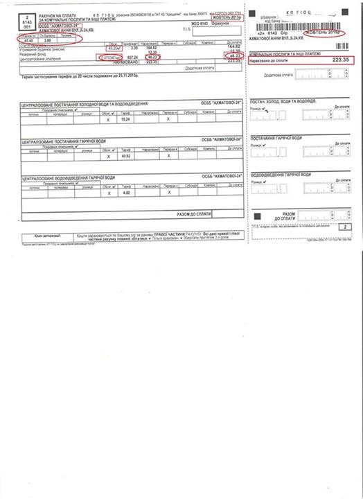 Прийшов рахунок за листопад. Повна перемога бпп-солідарності. Няких гігакалорій, лічильників і т.п. цяцянок від віталика. Тупа тарифікація за 1 м.кв. - більше 16 гривень. В ДВА(!) рази більше, ніж за жовтень, з урахуванням всіх коефіціентів. Що чекати від цієї влади далі, якщо порох полегшено зітхнув і сказав, що тепер 4 роки будемо жити без популізму? Як може рахунок відрізнятись в два рази?