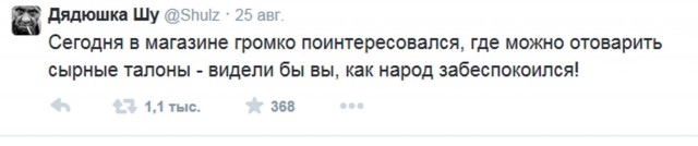 Сигналкин писал(а):Я ща легким тролингом занимаюсь в магазинах. Подхожу к полке где стоит куча товара, и так типа мысли в слух, шоб побольше народу слышало, жене рассказываю - возьми побольше, Игорь Петрович сказал что с понедельника завоза горчицы не будет до конца месяца ...