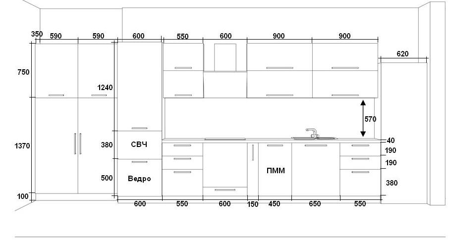 п.с. левые два пенала по глубине 350 мм на схеме проставлено. Они стоят в нище которая получилась из - за вент каналов