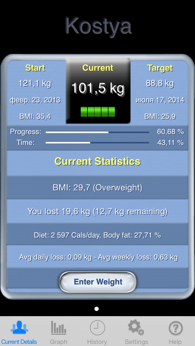 Сайт Дюкана считает приведённый индекс, учитывая другие конституциональные особенности, в том числе и исторический вес, особенности питания и активности. По нему у меня целевой вес 95,5 кг. Это - мой тактический и наиболее важный рубеж, достичь которого очень хочется до конца года.