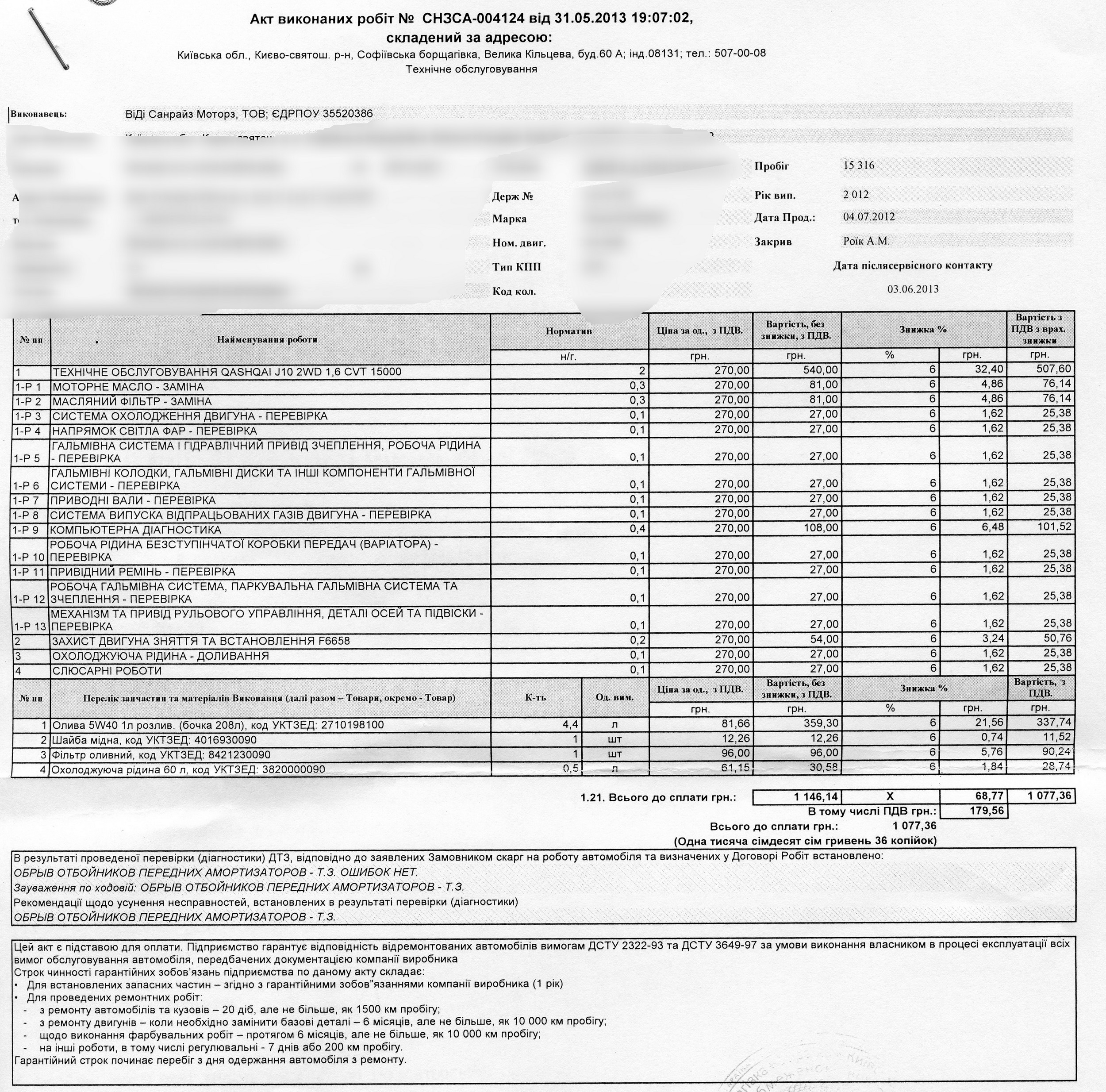 kambodju писал(а):snap писал(а):прошел ТО-1,скидка на работу 25%,на запчасти 15%,счет оплатил 960 грн,Днепропетровск "Автоимпульс"