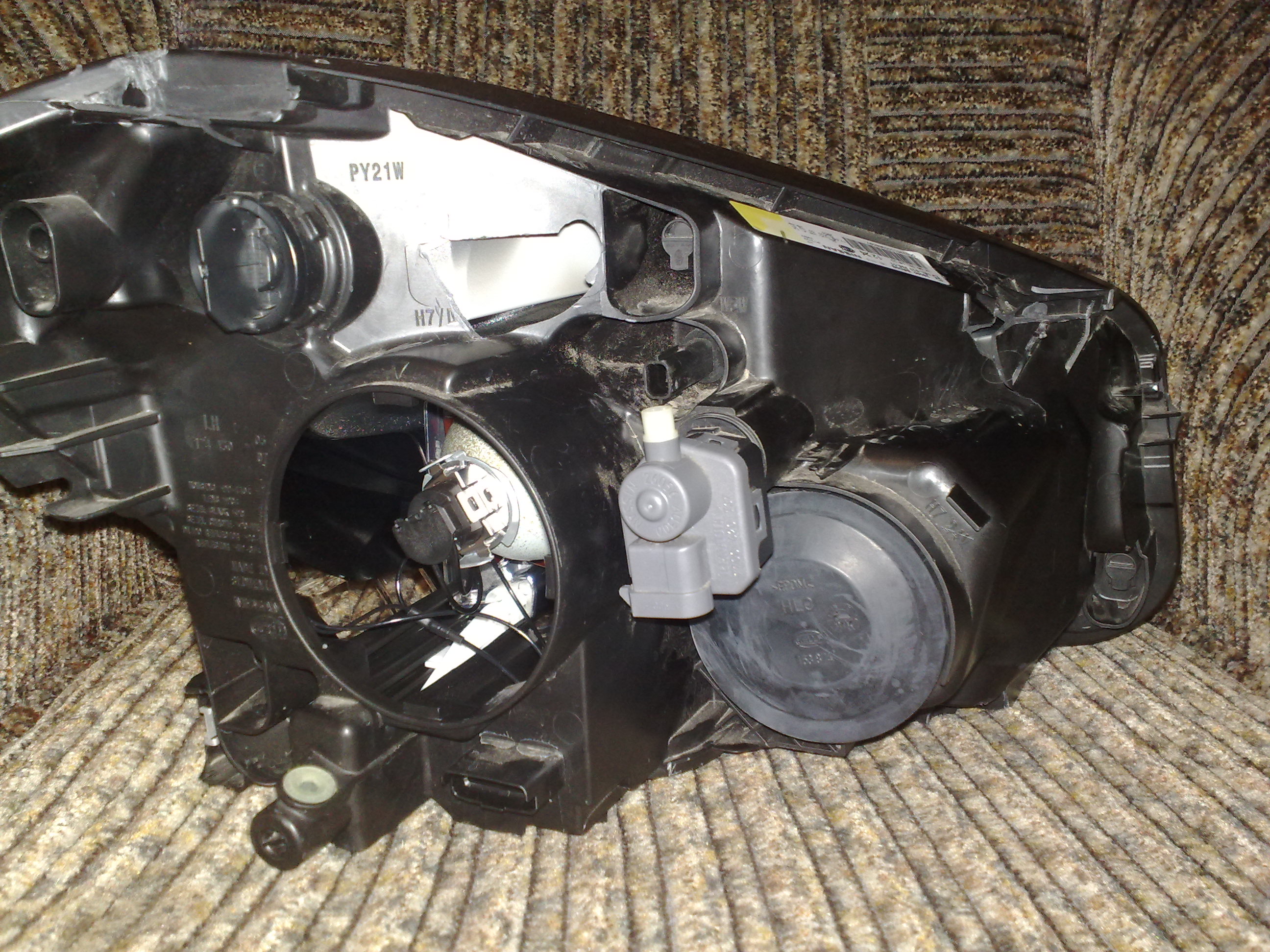 Фара немного разбита. С тыльной части образовалось два отверстия, и сломаны два верхних крепления. Оптическая часть фары полностью цела (линза, отражатель, маска). Фара продается с электрокорректором (26056-AU300), без ламп, со всеми заглушками и разъемами. Пробег фары на авто ок. 2 000 км.