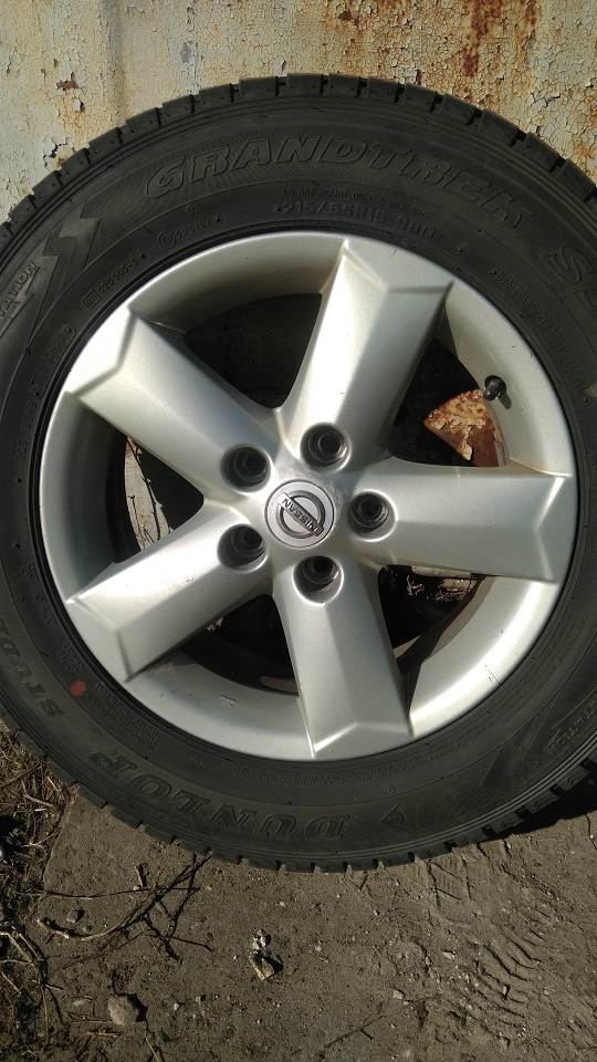 1. Оригинальные диски Nissan 16" с зимней резиной Dunlop Grandtrek SJ6.