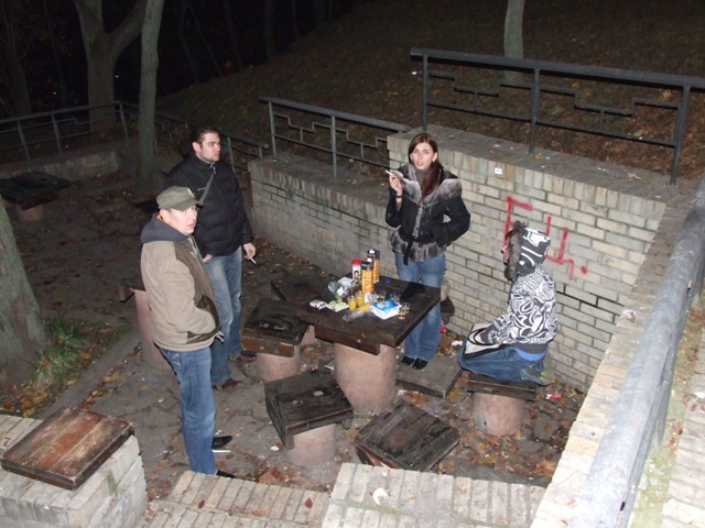 Но хочу сказать, что настоящее блаженство было для всех сесть в теплую машинку, так как текила-текилой, тернопольская передача тоже была горяча, но на улице -1 градус ночью был и почти 3 часа в парке протусовавшись - замерзли, особенно я, потому что из вышеупомянутых напитков только в начале одну порцию текилы выпила - я была вчера водителем. Ребята смеялись, что вспомнили студенческие годы, а для меня это первый раз был