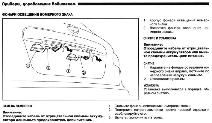 Замена ламп освещения номерного знака
