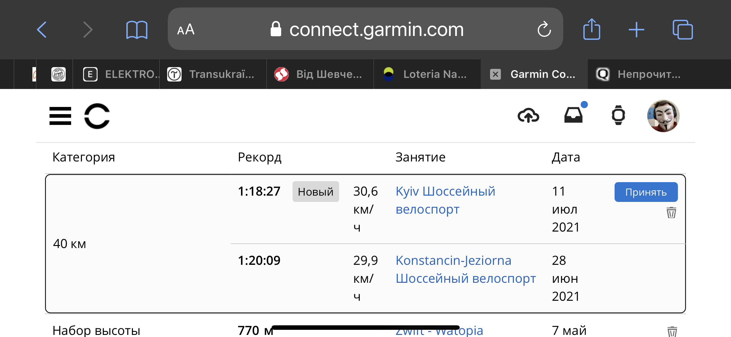 в субботу примерно в 18:30 после 170км, набора высоты примерно 2000+м и 12 часов под дождем оказался в г.Стрый, до финиша во Львове ровно 100км. Собрался в гостиницу спать. Считаю - сотка, это 5 часов, пол часика на туда-сюда, и еще час до поезда остается, поезд в час ночи. Думаю ладно хер с ним, иду ва-банк, еду. До 205км все шло по плану даже с опережением, потом выехал на грунтовку, потом стемнело, за 4.5 часа проехал еще всего 40км. Ждал ждал асфальт, но его все не было, ехал по грязи, лужам, почти вслепую, понимал на спуске или на подъеме только по тому с каким усилием нужно куритить педали, повороты по стрелке навигатора. Передний переклюк заклинило, задний как-то еще работал, ямы (лужи) брал ходом, но иногда перед колесом появлялись булыжники размером с кирпич, вот это было стремно. Когда в полночь стало понятно, что поезд уезжает без меня, а приключение может кончится плохо, начал подыскивать укрытие переждать до рассвета, но какое укрытие в полях и селах на 3 дома? В итоге сошел с трека, выехал на трассу, нашел остановку и провел там 4 часа полностью мокрый, под спас одеялом, температура +16. Начало сереть - вернулся на трек и доехал маршрут. Вот такая покатуха под дождем была к меня, почти все время эти сутки шел дождь прекращаясь не на долго. На фотке видно что индикатор фонаря уже горит желтым, фонарь работал весь день обозначал себя на дороге т.к. видимость была плохой и мог в любую минуту перейти в энергосбережение, тогда мне вообще бы край настал, светил бы путь мобилкой. Мигалка, кстати, к тому времени вообще потухла, ну да впрочем мигать там было не кому