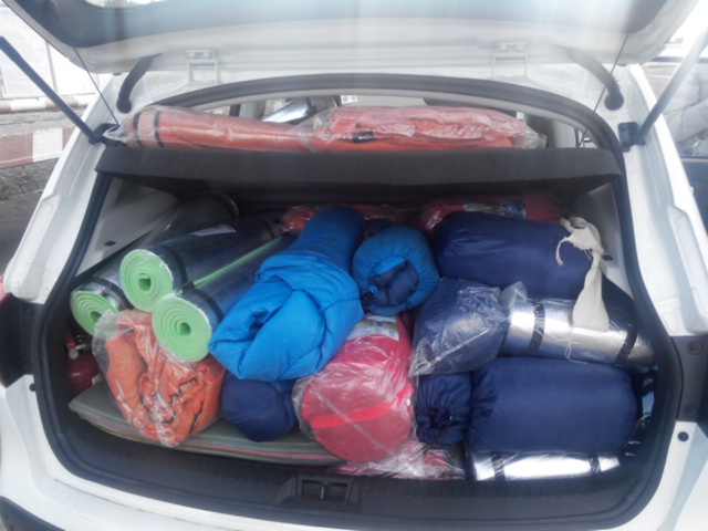 спальники, карематы, дождевики, берцы р. 42-44, защита на колени и локти, защитные очки, теплые свитера, теплые носки.