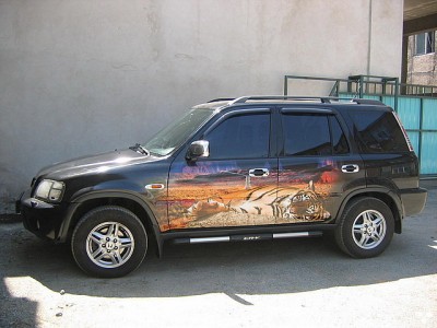 вот видел в городе пару раз такой тюнинг (пленка с аэрографией - защищает от сколов ЛКП, мелких царапин и УФ)
