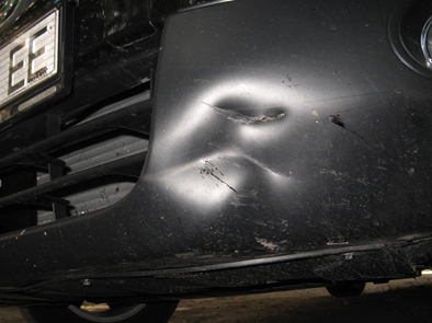 Мы вчера парковались и незаметили невысокий столбик металлический и как результат вмятина на бампере (15-20см) и сквозной прорез (5см) острым краем.