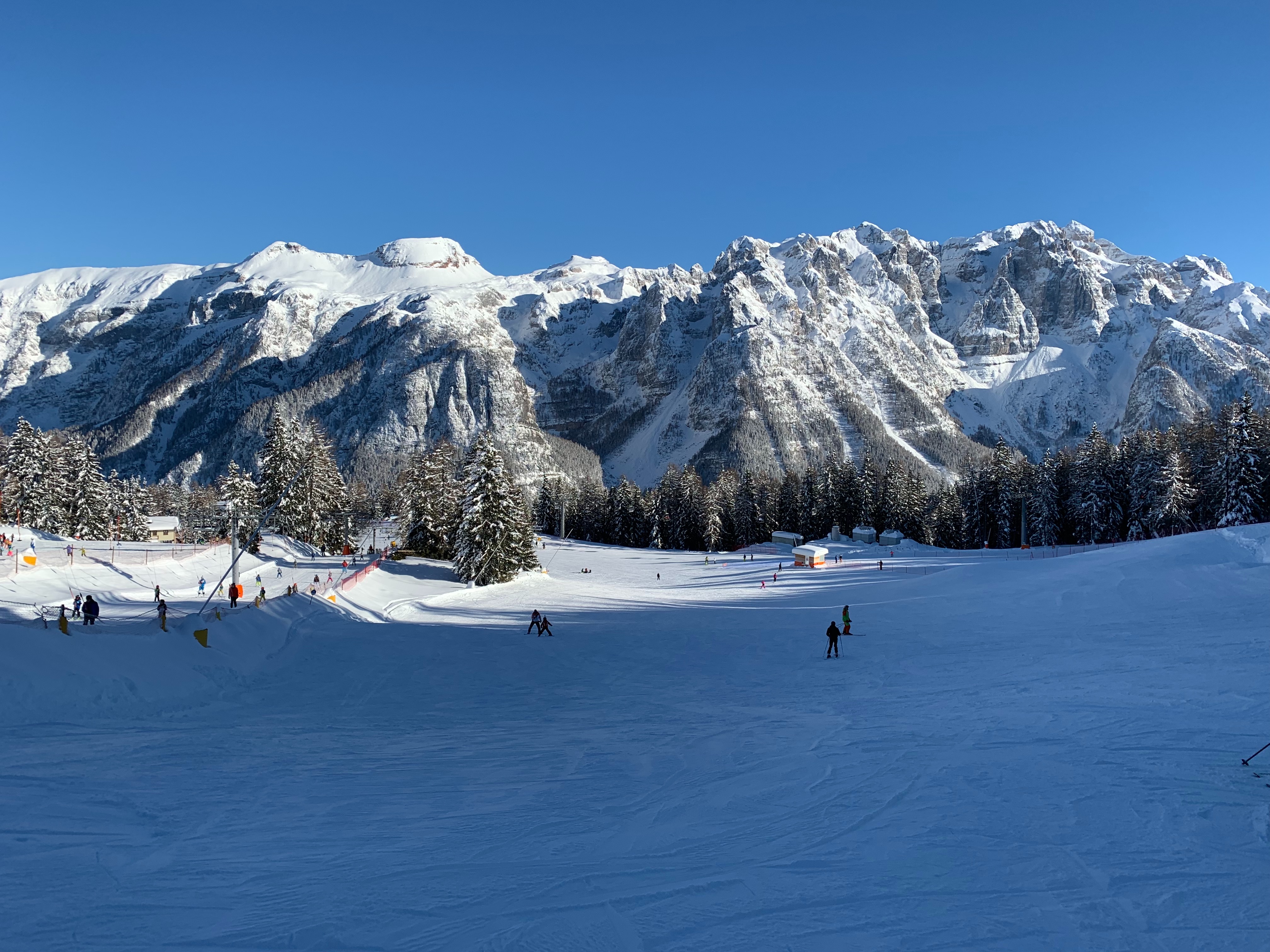 Пока Коди мирно сопит на парковке под отелем в деревушке Димаро (мы даже не знали, что будем жить именно в ней, что весьма позабавило старшего), мы третий день укатываемся в хлам. У младшего даже что-то типа высотной болезни сегодня приключилось, но завтра снова в бой! Когда одни друзья советовали начинать кататься сразу в хорошем месте, чтоб поехать и заболеть, я послушал других друзей, выбрав эконом-вариант в польской Бялке в период рождественских каникул прошлой зимой. В итоге, у меня за полтора дня катания по искусственному снегу под дождем - парочка падений и повреждение колена, которое потом 3 месяца лечил, испортив и велосезон 2018. Малой не научился, жена тоже, старший, правда, поехал, и на компанейском Ски-викенде в Щирке он уже штурмовал черные трассы. Я же пытался хоть что-то вспомнить из того, чему учил инструктор в Бялке и боясь за колено, особенно при вылетах на ледяные поля. Щирк - классный, 40-45 км трасс, новая инфраструктура, в которую влили мощно словаки пару лет назад, но на выходные туда лучше не лезть: народу море, пробки дикие... Короче, если бы не оказия в Щирк и хорошая компания коллег да успехи сына, я бы забросил идею открыть для себя зимний спорт. А ведь так мечталось, так хотелось... И вот таки рванули в Доломиты. С польским организатором, на семейный обоз, приуроченный к мазовецким школьным каникулам. Малой с польским инструктором в детской школе, старший - в группе для середнячков маньячит по трассам супергиганта и остальным черным местам со своим инструктором, который на год старше его, мы с Ирой в бегиннерах с парой полек и парнем-англичанином, который работает в Польше и пару дней назад впервые встал на лыжи. Тичер у нас итальянец с изумительным английским и просто гений педагогики. За три дня его стараниями мы уже гоняем на 40-45 км/ч и почти освоили повороты на параллельных лыжах. Сам курорт - это сказка. Мы взяли скипасс не на весь комплекс 150 км (Folgarida-Marilleva + Madonna Di Campiglio) трасс (их там под 70), а на одну его, ближнюю (первую) часть. 38 трасс, высота максимально 2150 м над уровнем моря, но главное - до отеля 4 минуты. Трассы широченные, при довольно большом количестве людей (больше 2-х минут все равно не стояли к подьемникам), они пустые. Подготовлены идеально. После прошедших накануне снегопадов имеем местами до 1,5 м покрова. Что бросается в глаза - обилие детских школ и мелюзги в них: польские, итальянские, румынские. У нас в обозе есть малята по 3 года! Приезжаем на гору к 9-00, успеваем до встречи с инструкторами разогреться и вспомнить вчерашние трассы. С 10-00 до 12-00 муштра, 12-00 - 13-00 ланч там же с детьми, которых нам привозят. Успеваем за 20-30 минут покушать и со старшим еще закрепить то, что учили до обеда, с 13-00 до 15-00 снова муштра. Вечером всякие развлекалова и анимации для детей и взрослых, в том числе и теория, правила поведения на горе, безопасность. В четверг будут типа соревнования внутренние, в пятницу награждения и призы для детей. В общем, заболели мы тут этим спортом окончательно. Поехали в прямом и переносном смысле. Старшему пообещал персональные буты купить на следующий год. Ну и правы были те друзья, которые советовали начинать сразу в хорошем месте. Хотя, продолжать будем в аналогичных.