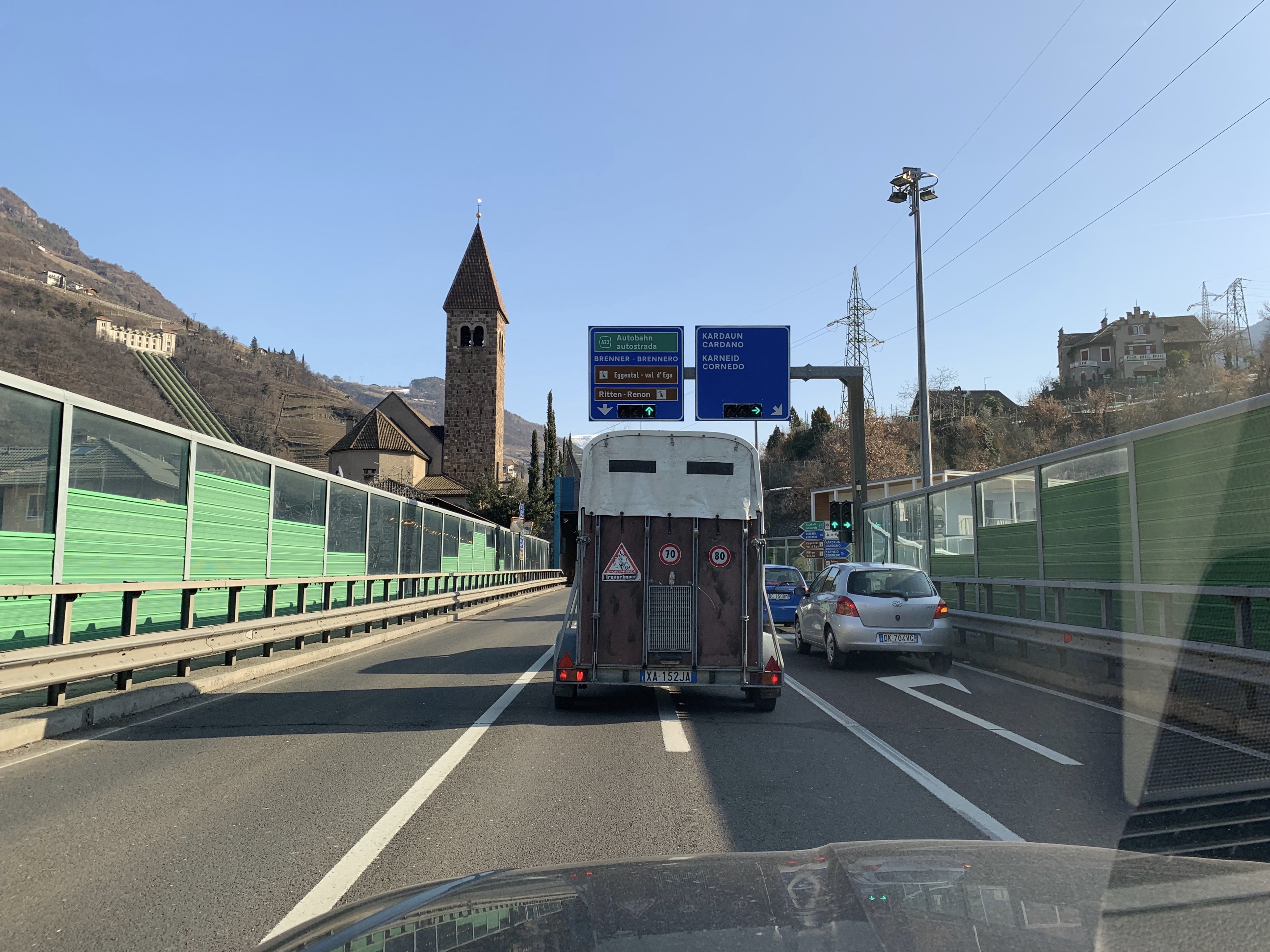 И снова дорожущие итальянские автобаны... Перед границей с Австрией на Бреннеро-пасс - тянучка в 10 км, а на самом терминале оплат можно потерять минут 20. Так что, мы еще раз порадовались, что и виньетки, и пасс купили онлайн заранее, для таких есть два пустых крайних левый гейта.