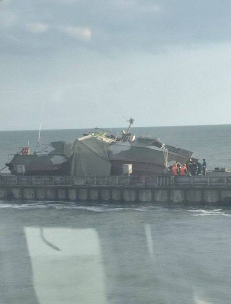 З'явилася фотка розваленого навпіл ракетою Байрактара катера "Раптор". Одного з тих, що на початку травня показували жест доброї волі біля Зміїного. Для чого його треба було діставати з дна - незрозуміло. Адже, після вибуху, пожежі та затоплення там зовсім нема чого відновлювати, легше новий побудувати