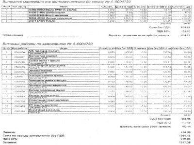 Ну прошел и я ТО-1, мда. Реально представлял себе что будет немного подругому. Что действительно будут делать ТО, делать работу!, осматривать, проверять.... Согласен, что ребята на сервисе полуспят и им не интересно, что там у меня с машиной. Про отключение евросвета и замену перегоревшей лампы пришлось говорить трижды. А так на общем фоне нормально, только дорого как для первого ТО. Вопросов к стоимости запчастей нет, а вот работы неправильно наценяются, вернее время на работы. Если в реальности 2,5 часа было потрачено на ТО и это с хождением за запчастями с уходом на маленький перерывчик, чтобы отметить день рождение сотрудницы, то по накладной они должны были копаться 4,5 часа.