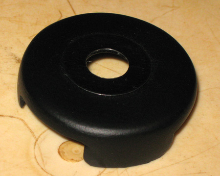 В центре крышки сверлим отверстие под ключ, диаметром 10 мм, красим в радикальный черный цвет и что-б не царапать накладку ключом, если в дырку не попадаешь, вокруг дырки была приклеена какая-то шайба (по-моему это было стопорное кольцо с якоря электродвигателя, из сплава - что-то с бронзой). Шайба была предварительно отполирована до зеркального блеска. Хотел нанести на нее метки замка зажигания, но решил что это уже лишнее, все равно они нафиг не нужны и так хорошо смотрится. Крышка была надета на замок, стала очень плотно.
