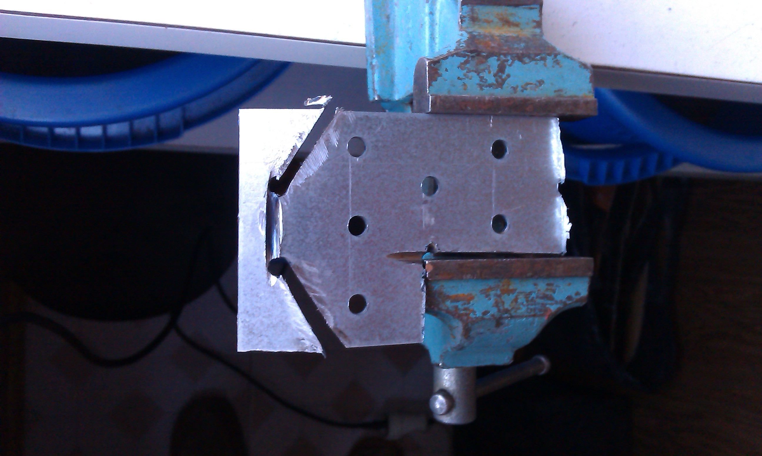 Далее просверлин отверстия в "ушах" детальки, обработал заусеницы, согнул, придав форму скобы и получил это