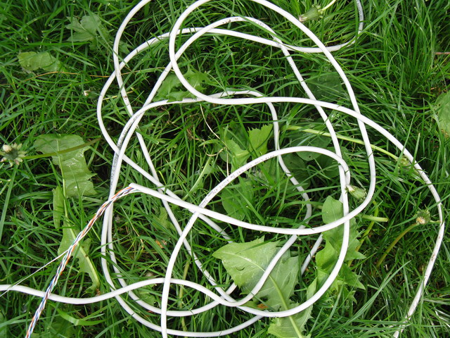 6. Окантовка. Использовал провод "Витая пара", серого цвета, разрезаем вдоль, все провода выбрасываем, остается только изоляция: