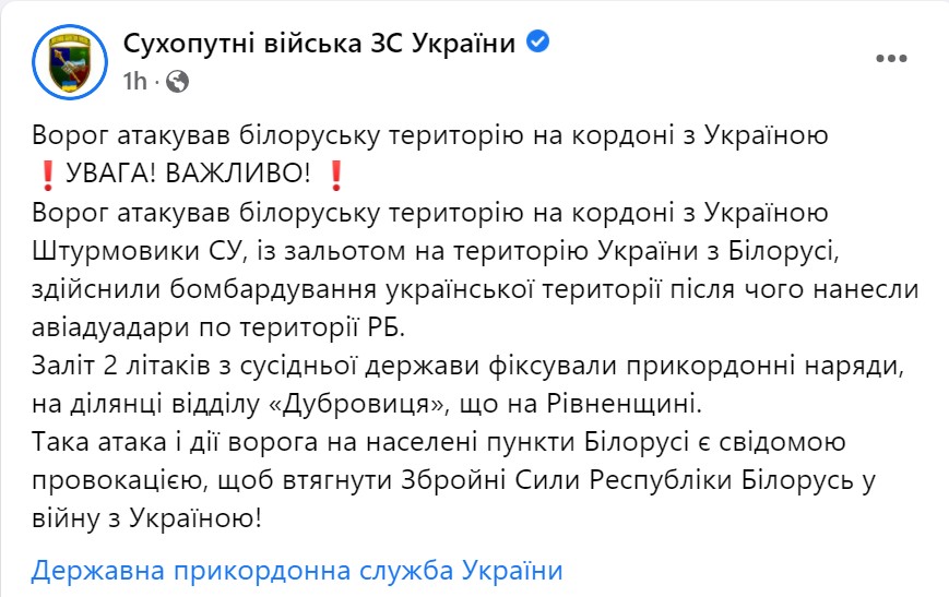 Забыл. Про атаку нашей территории, похоже, фейк. Чуть промониторил ...